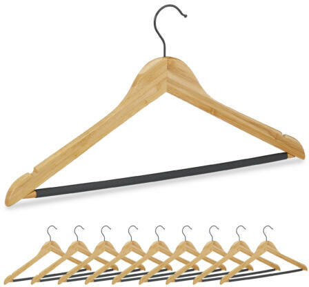 Bambusz VállfaTárolja ezeken a széles bambusz válfákon mindenféle ránc és gyűrűdés nélkül a kabátokat, öltönyöket, ingeket és bármilyen más felsőruházati darabot. A vállfa két oldalán található bemarások lehetővé teszik a ruhák vagy felsők vékony pántjaikon keresztül történő tárolását, azok esetleges leesése nélkül. A bordázott, csúszásgátló anyaggal bevont nadrágtartó rúdnak köszönhetően a nadrágok vagy szoknyák csúszás vagy leesés nélkül tárolhatóak. A bambuszból és acélból készült vállfák használata egységes megjelenést kölcsönöz ruhásszekrényének. 360°-ban körbeforgatható fekete színű fém akasztókampó. Csúszásmentes bevonat a nadrág- és szoknyatartó rúdon Elegáns és letisztult megjelenésTeljes mérete: 23,5 x 44,5 x 1 cm (Ma x Szé x Mé) Nadrágtartó szélessége: 37 cm Terhelhetősége: max. 5 kg Anyaga: Bambusz, Fém, PVCA feltüntetett ár, 1 darab termékre vonatkozik.