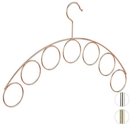Sál és Kendőtartó VállfaEz a vállfa nemcsak dekoratív, hanem rendkívül praktikus is. A különleges formája lehetővé teszi hogy sálakat, kendőket, öveket vagy nyakkendőket tárolhasson rajta.  Klasszikus akasztóként, vállfaként is használható, így ideális ruhák,  blúzok, ingek tárolásához is.  Szüntesse meg a káoszt a szekrény fiókjaiban, és használja a vállfát övekhez vagy nyakkendőkhöz is.  Ha áthúzza őket a lyukakon, kevésbé gyűrődnek majd a sálak, kendők.  Helytakarékos, kialakítása vékony,  ugyanakkor erős fémből készült.  Teljes mérete: 24,5 x 40,5 x 0,3 cm (Ma x Szé x Mé) Gyűrűk átmérője:  5,5 cm Terhelhetősége max. 3 kg Anyaga: Fém Szín: Réz